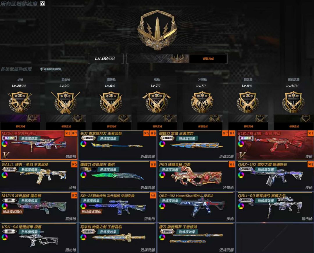 三神话❤️熟练度全满⚡️金斧末日极氪套❤️24金刀⚡️14传说角色❤️300金皮⚡️追击.排位.爽玩