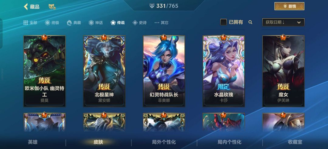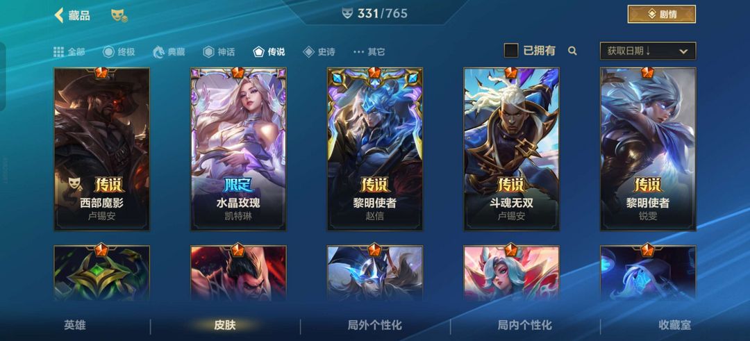 装备描述:可排位,全英雄,331皮肤,38传说,皇子此志凌云(新皮肤)(ig炫彩)至臻心之钢永恩,水晶玫瑰凯特琳,水晶玫瑰卡莎,御风墨影亚索等超高质量皮肤。