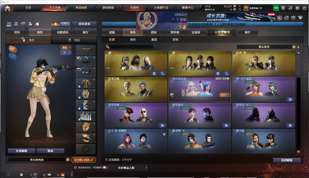 限制: 撤单率<50%才可租用此帐号装备描述:道具齐全!极品双全装号!禁止BUG 外挂辅助 违反一律永久拉黑!收藏不迷路!