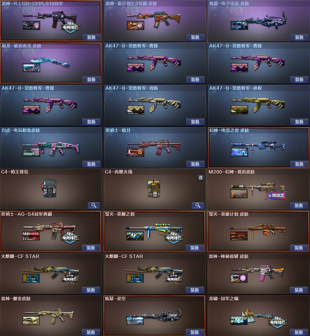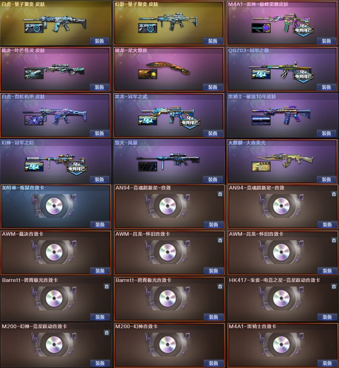 装备描述:>>本游戏账号:英雄武器102个; 王者武器25个。 装备齐全拥有完美游戏体验。重要的是,特殊装备有:M4A1-黑骑士、AK47-火麒麟、Barrett-毁灭、加特林-炼狱、M4A1-雷神、M4A1-黑龙、QBZ03-金色蔷薇、AK-47-雷神、Scar Light-白虎、传说暗裔、M200-幻神、USP-雷暴、M14EBR-玄武、M200-竞技荣光、擎天-竞技荣光、柯尔特-竞技荣光、烟雾弹-竞技荣光、闪光弹-竞技荣光、高爆手雷-竞技荣光、M4A1-神工天巧、USP-神工天巧、高爆手雷-神工天巧、闪光弹-神工天巧、唐刀-神工天巧、烟雾弹-神工天巧、炫金火麒麟、炫金毁灭、王者之魄烟雾弹、高爆手雷-雷霆王者、COP 357-雷霆王者-觉醒版、M4A1-雷霆王者-觉醒版、王者之光-觉醒版、王者蔷薇-觉醒版、王者霜心、雷霆王者之锋-觉醒版、魂-麒麟刺-萌杀、堕天使、雷霆-β、王者-瞳-闭月羞花、灵狐者-职业经理、圣诞潘多拉-X、王者潘多拉、生化弹匣、M4A1-黑骑士音效卡、M200-幻神音效卡、加特林-炼狱音效卡、Scar Light-白虎音效卡、王者之魄金色光效、等,随意畅选