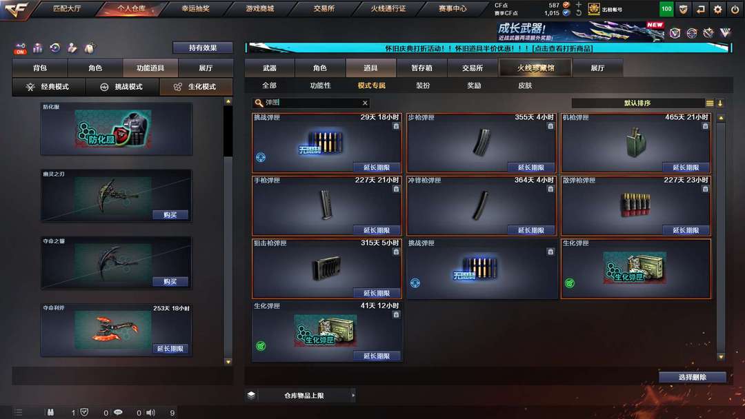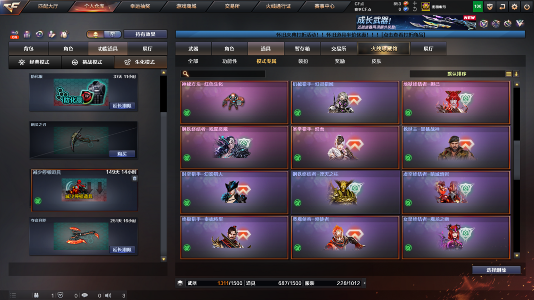 【顶级生化】4防传说影煞5盘烈2蝴蝶刀3清道夫2炼狱+满级八面玲珑+九霄圣角+生化满皮+生化雷x10