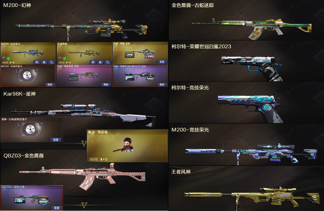 爆破装✨幻神5皮白鲨星耀电流音效卡+星神裁决雪莉杨✨QBZ冠军之薇+竞技荣光套+3柯尔特✨4防云悠悠