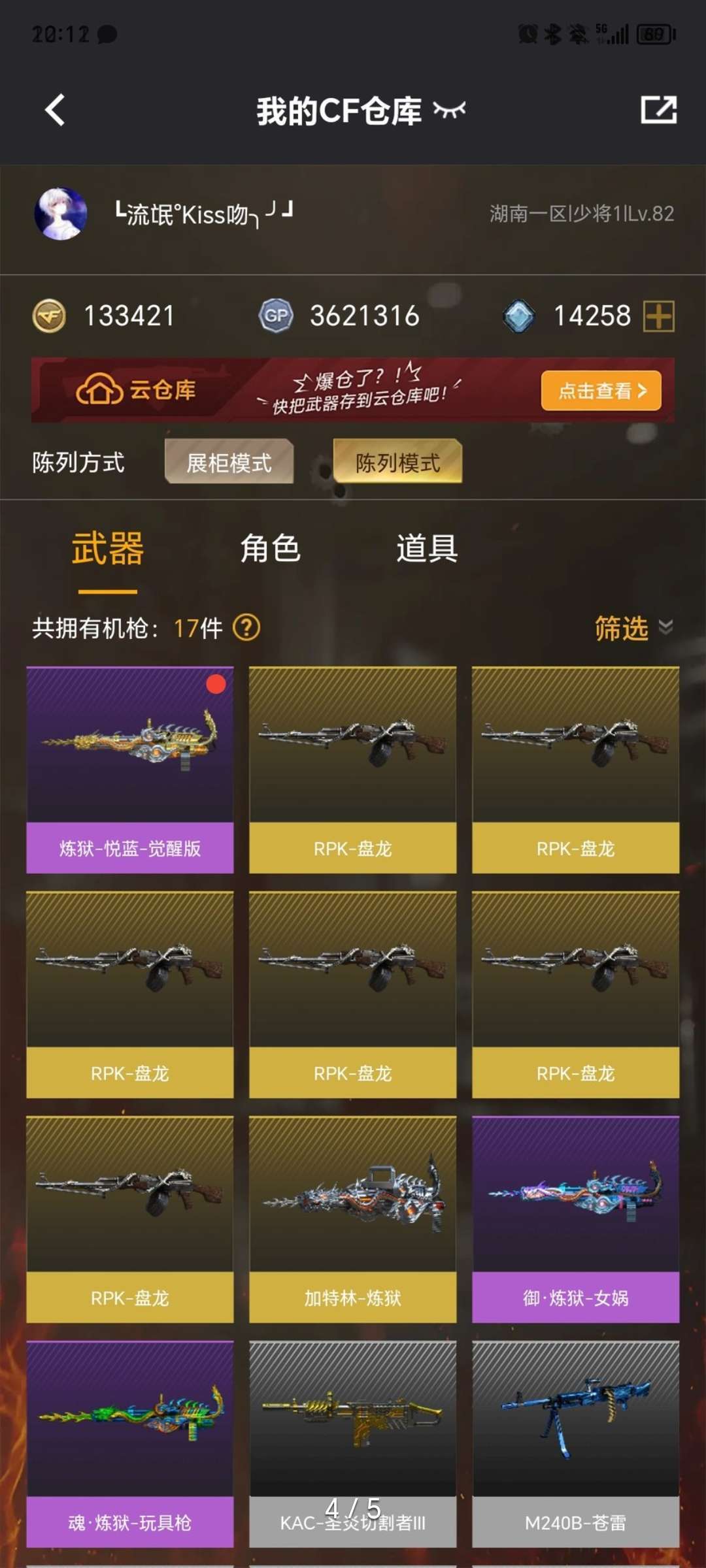 装备描述:六盘-六烈-蝴蝶-玄武-m200幻神-m200幻神竞技荣光-生化爆破都能玩~~~~~