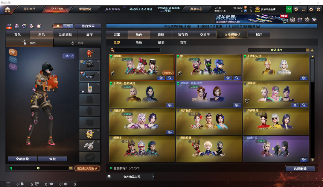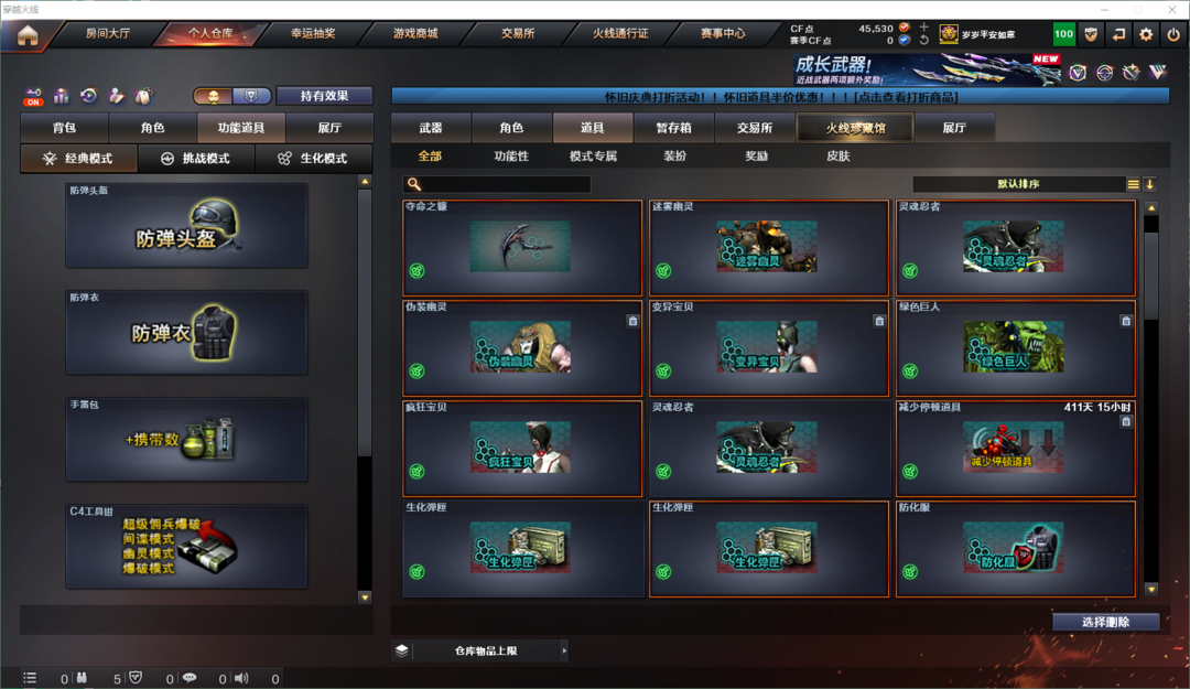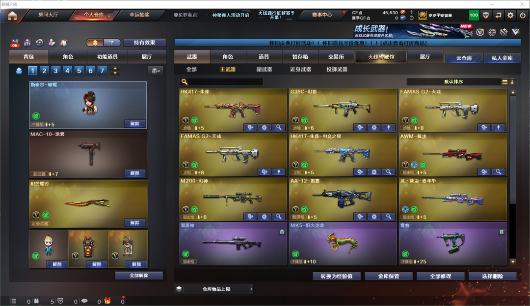 限制: 租号3次及以上 | 撤单率<80%才可租用此帐号装备描述:隼,狮子炼狱,G36c幻影,炽芒碟刃,加利尔ACE-天袭,FAMS-天戎,白虎音效卡,机械姬,新生化利器毒蜂,黑龙吞噬者,6烈6盘6修炼狱死亡套,斯泰尔蝴蝶,英雄角色迷迭香,幻神M-200,火麒麟音效卡,毁灭耀金皮肤音效,黑骑士耀金皮肤音效,雷神耀金星空皮肤,王者葵-惊若翩鸿生化四防,职业经理生化四防(佣兵觉醒,捕食之眼,生化觉醒,移速增加)堕天神周年礼包,多稀有玩偶,生化爆破压力极品全装,全弹夹不退包,喜欢收藏。