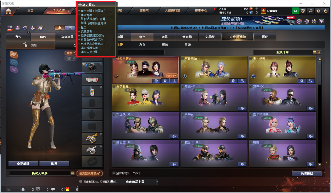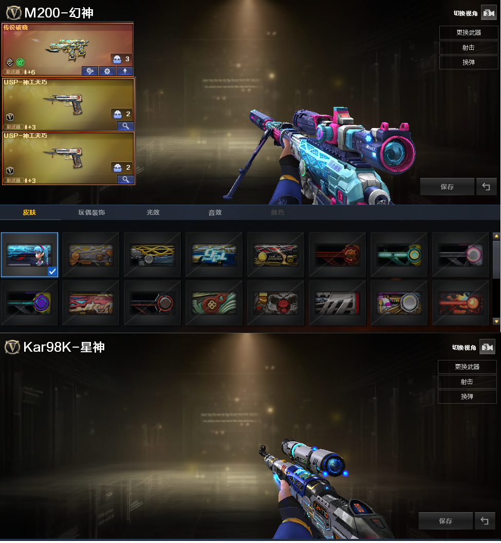 装备描述:排位:可以、、、、、、、、、、、、、爆破四防:幻神音效(荣耀世冠白鲨皮肤)、传说破晓、两个USP神工天巧、柯尔特卡通、柯尔特宇航兔兔、星神、qbz金色蔷薇、QBZ云龙、雷神、毁灭、火麒麟、、、、幻神音效、毁灭音效、、、、、4套神工天巧手雷、3套云龙、、、爆破四防(传说艾莉莎)