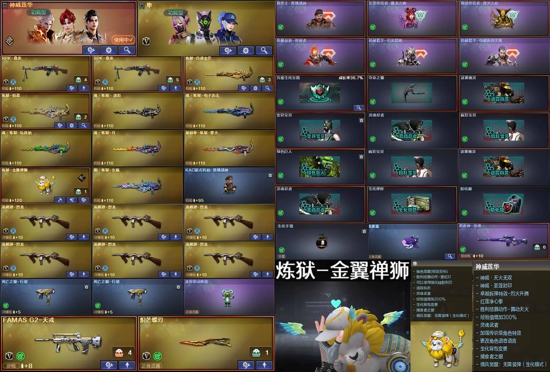 限制: 租号8次及以上 | 撤单率<50%才可租用此帐号装备描述:【装备道具】:【 6传说+炼狱金翼禅狮+三传说角色三花聚顶+轮椅步枪大满贯(幻影/银翼/天戎)幻神四质量皮肤三件套+裁决T0流光秘银三件套+星神三件套+雷神荣耀三件套+八质量副武器+幻影三件套+白虎三件套+金色蔷薇三件套+毁灭三件套+6烈龙+炽芒蝶刃】★/神威莲华/神威天绫/传说圣谕/传说幽冥/传说艾莉莎/传说星骇★幻神-电流骇客/幻神-AG-CFPL S24冠军 皮肤/幻神-冠军之幻/幻神-星耀/星神-黯钢战甲/星神-漫游/毁灭-定军扬威裁决-运输船/裁决-叶芒苍灵/裁决-流光秘银/传奇石头-横秒之巅/雷神-荣耀之魄/幻影-量子聚变/金色蔷薇-电竞之星 皮肤/金色蔷薇-Heartshot/白虎-量子聚变/白虎-AGS20冠军/QBZ-AG-S19冠军/QBZ03-冠军之薇/QBZ-枪娘阿敏★FAMAS G2-天戎/G36C-幻影/QBZ191-银翼游侠/炽芒蝶刃/王者白虎/98K-量子之心/炼狱-百战金芒/柯尔特-无冕之王/Anaconda-量子之心/柯尔特-荣耀世冠EP(2)/USP-冥王/★USP-雷暴王者/王者凛烈/M4A1-雷霆王者/王者森力/★雷霆王者套装★魅影/关小雨/隼