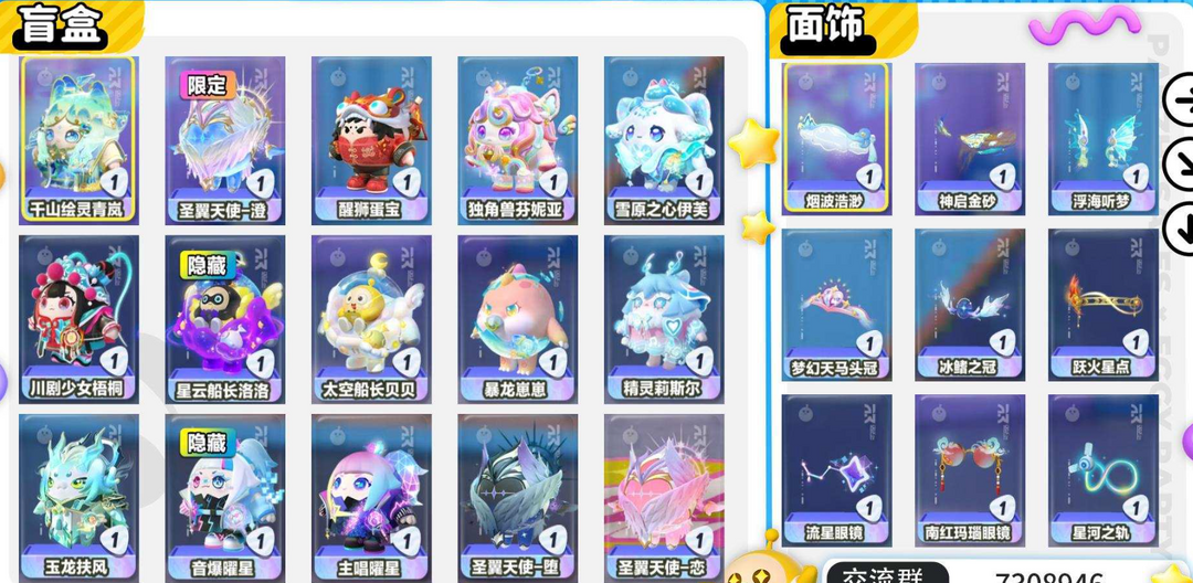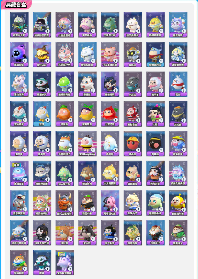 装备描述:安卓官服 14W潮流 18至臻角色 80典藏角色 月月摇摇兔(兔车车) 云梦兜兜龙 青鸾仙羽 裁决圣环 至臻角色: 圣翼天使澄- (限定) 千山绘灵青岚 醒狮蛋宝 独角兽芬妮亚 音爆曜星 星云船长洛洛 主唱曜星 玉龙扶风 圣翼天使-恋 圣翼天使-堕 雪原之心伊芙精灵莉斯尔 暴龙崽崽 川剧少女梧桐 太空船长贝贝 稀有盲盒角色:小羊 蜜蜂小羊 懒羊羊 水波蛋 红小豆 李建勋 飞天小猪班尼 神兽嘲风 水母莱莱 宝石甲龙晶晶 等各种