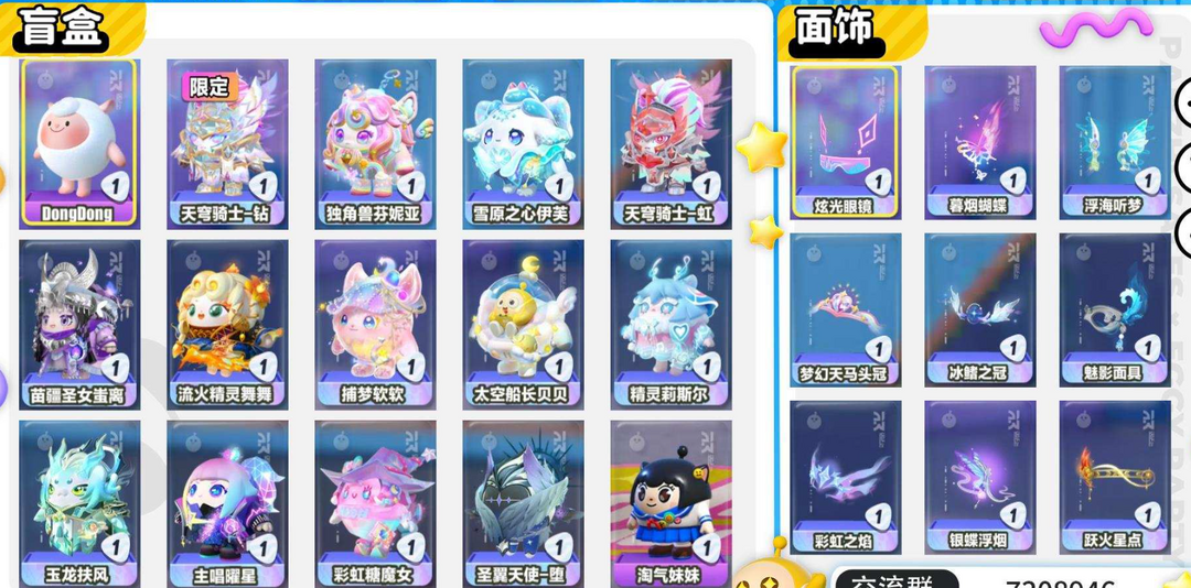 装备描述:安卓官服 19W潮流值 18至臻角色盲盒 100典藏盲盒角色 炫光舞台 摇摇兔 蒙胧胧 兔兔车 星河弹弹车 云梦兜兜龙 至臻角色:彩虹糖魔女(全染) 天穹骑士-钻(限定) 独角兽芬妮亚(全染) 主唱曜星(全染) 玉龙扶风(全染) 天穹骑士-虹 (全染) 圣翼天使-堕(全染) 精灵莉斯尔(全染) 雪原之心伊芙(全染) 太空船长贝贝(全染) 苗疆圣女蚩离(全染) 流火精灵舞舞(全染) 捕梦软软(全染)◆◆◆◆◆限定翅膀:冰晶耀盾 碎晶幻翼 月白之隐 天照耀盾◆◆◆◆◆稀有角色盲盒:萤火偷偷 灵灯闪闪 织梦精灵 水母莱莱 北极狐卢比 小羊 红小豆 水波蛋 圆圆子 祈愿精灵 大耳狗 等等各种
