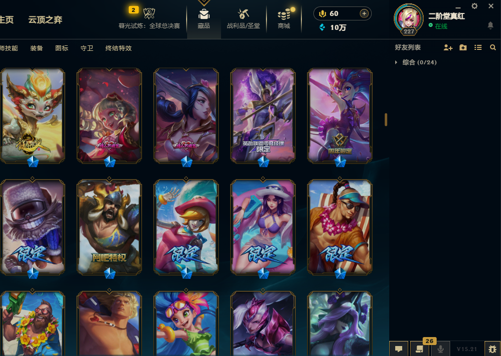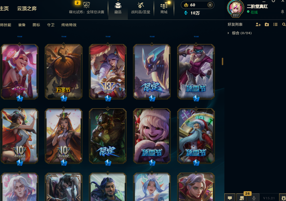 黑色玫瑰1300皮肤可排位双名人堂6终极萨勒芬妮美猴王海之歌灵魂亚索永恩套双城SKT-IG-冰雪套