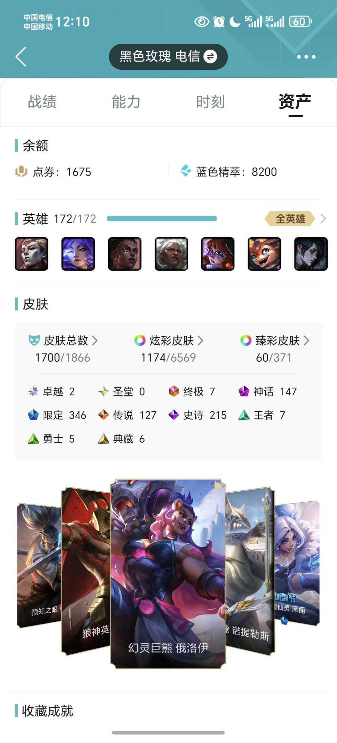 [黑色玫瑰]1700P+1174炫彩+云顶至臻阿狸+全至臻+全名人堂全年限周年庆号双色龙瞎胜利特效