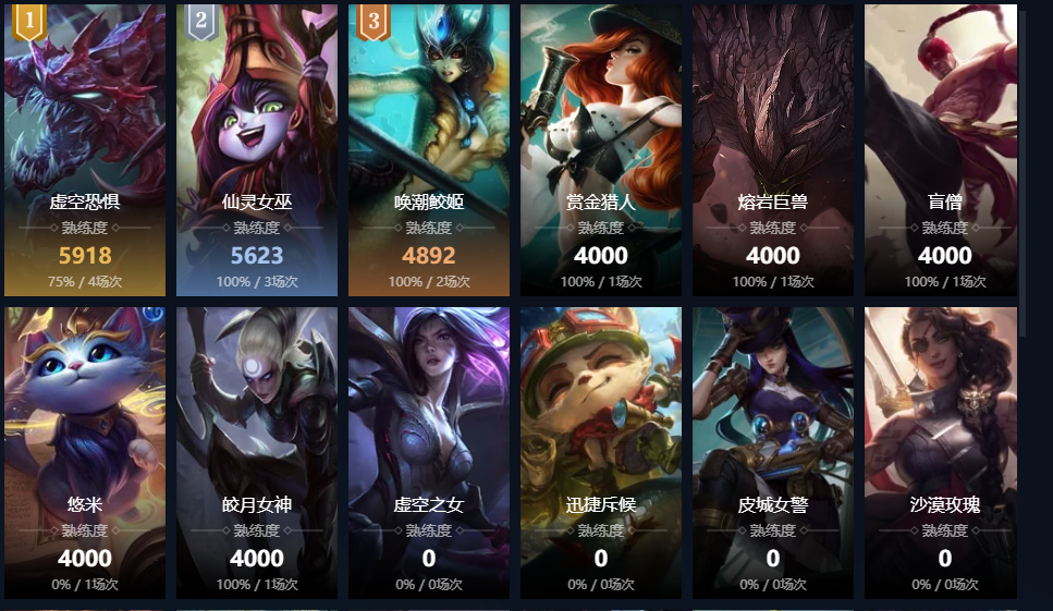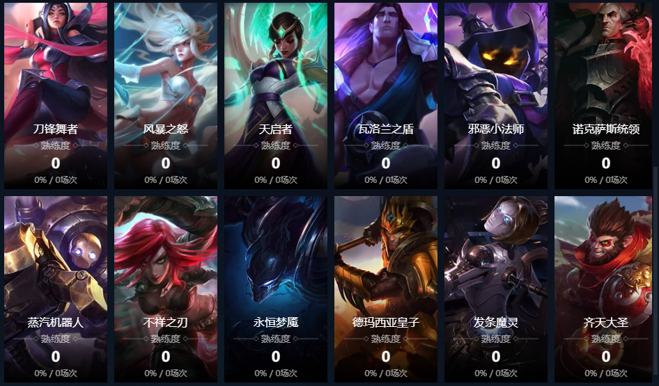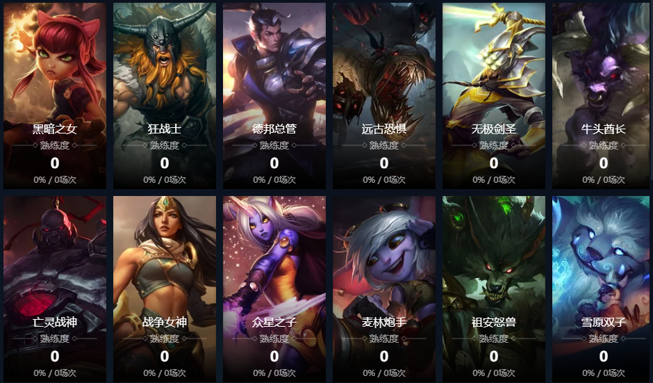 残月之肃;迅捷斥候;皮城女警;麦林炮手;战争女神;赏金猎人;黑暗之女;德邦总管;远古恐惧;无极剑圣;