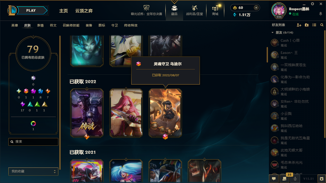 装备描述:SKT盲僧泳池派对盲僧炸弹人原计划卢锡安亚索灌篮高手诺手星之守护者狐狸灵魂守卫乌迪尔等