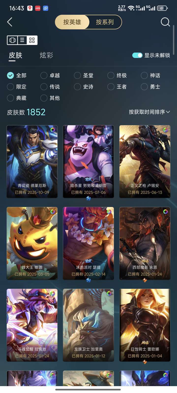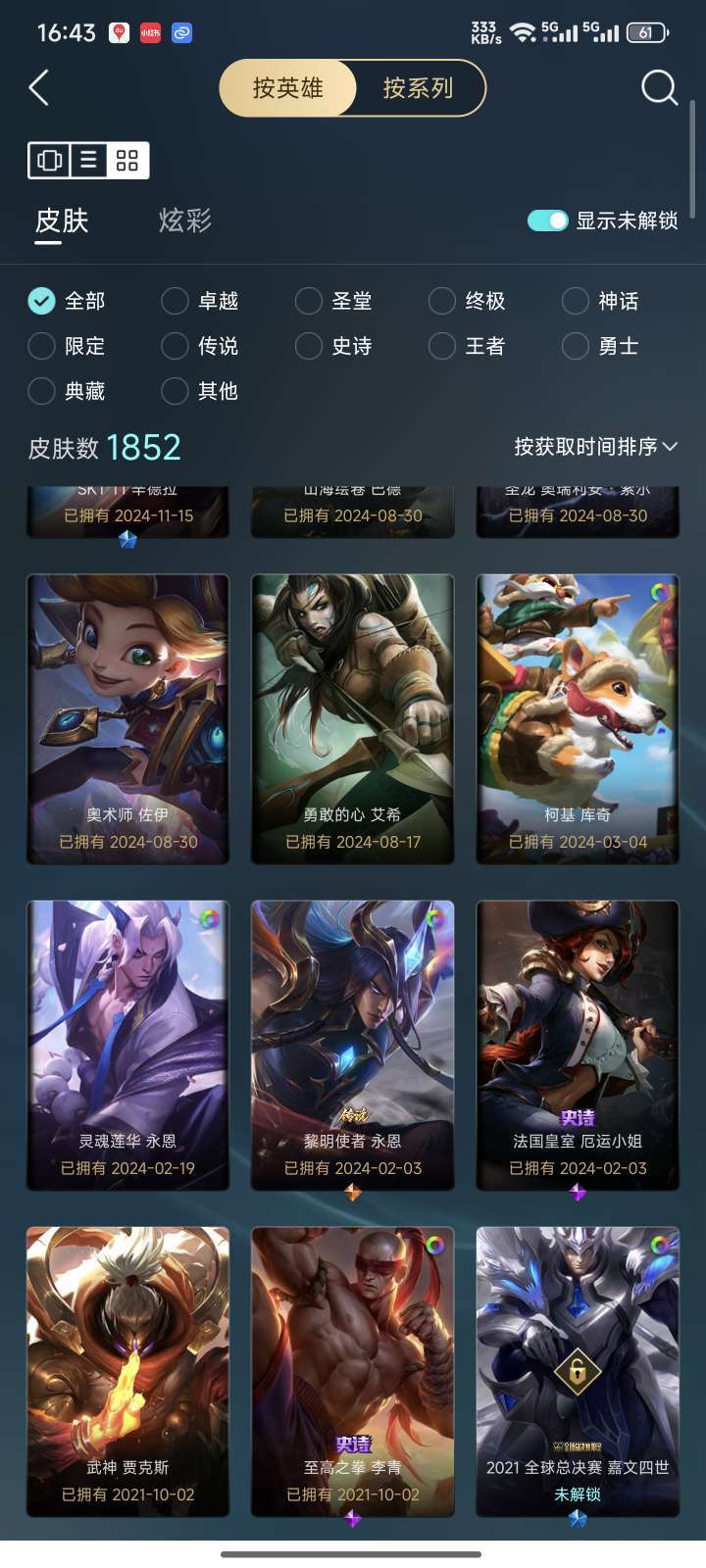 装备描述:西部永恩➕黎明永恩➕莲花永恩➕至高盲僧➕青花瓷诺手➕武神武器