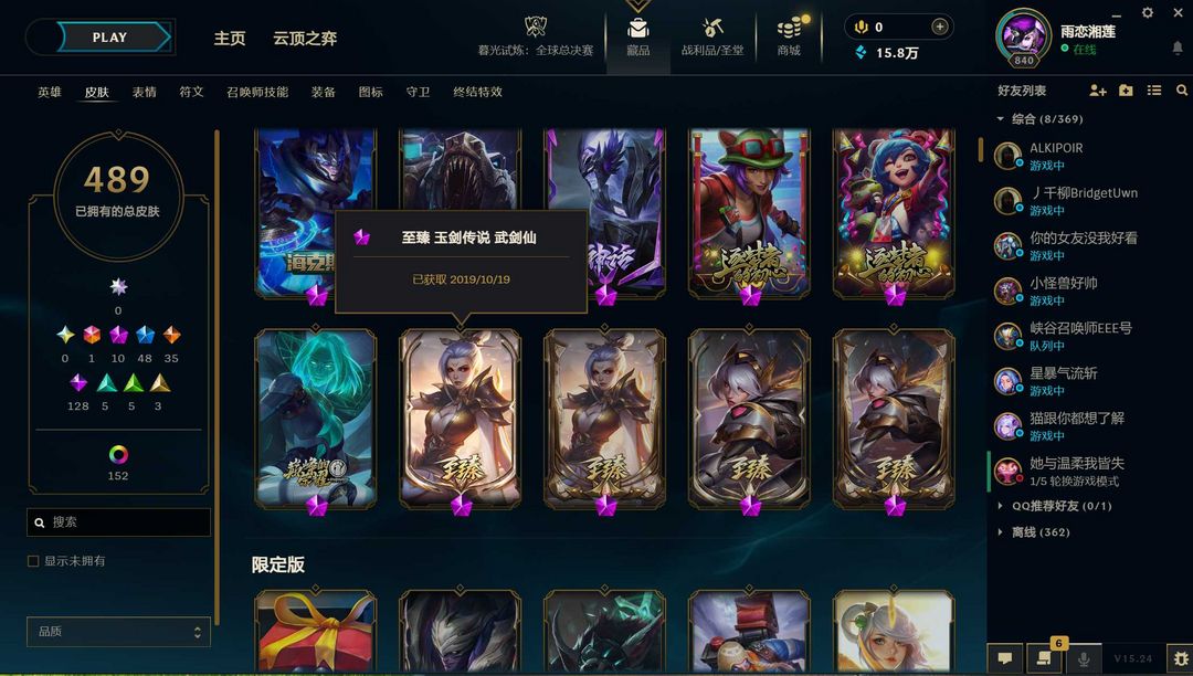 【联盟一区】全皮600★原皮488★炫彩112★臻彩14★段位实时★真实描述★