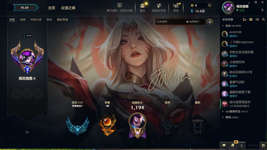 段位:840级 华贵铂金II