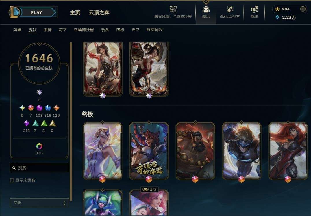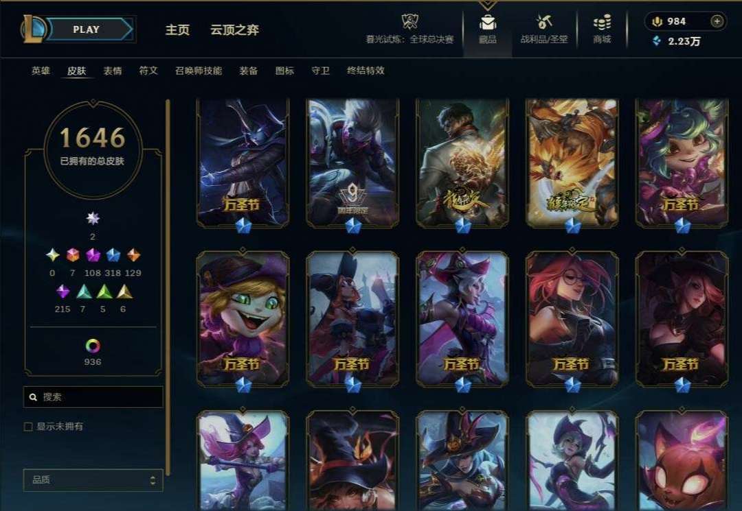 1646原皮 殿堂阿狸卡莎,全终极 热门皮肤多,云顶至臻格温 甜心咖啡厅