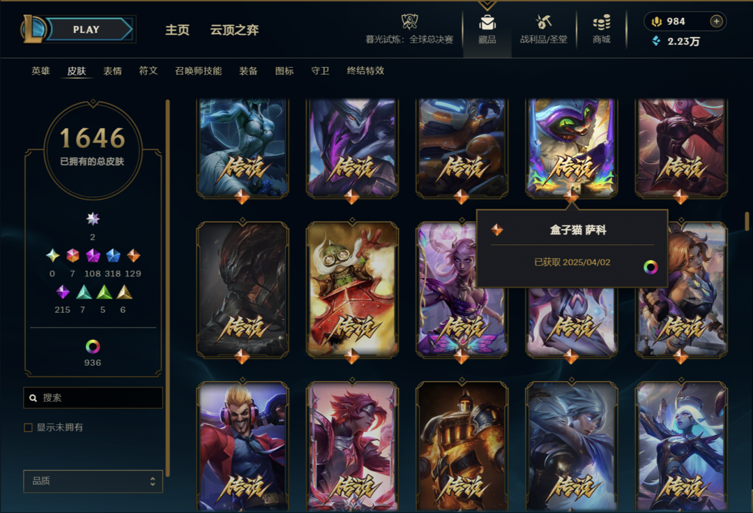 装备描述:全英雄,热门跟限定皮肤多,云顶跟联盟体验感好