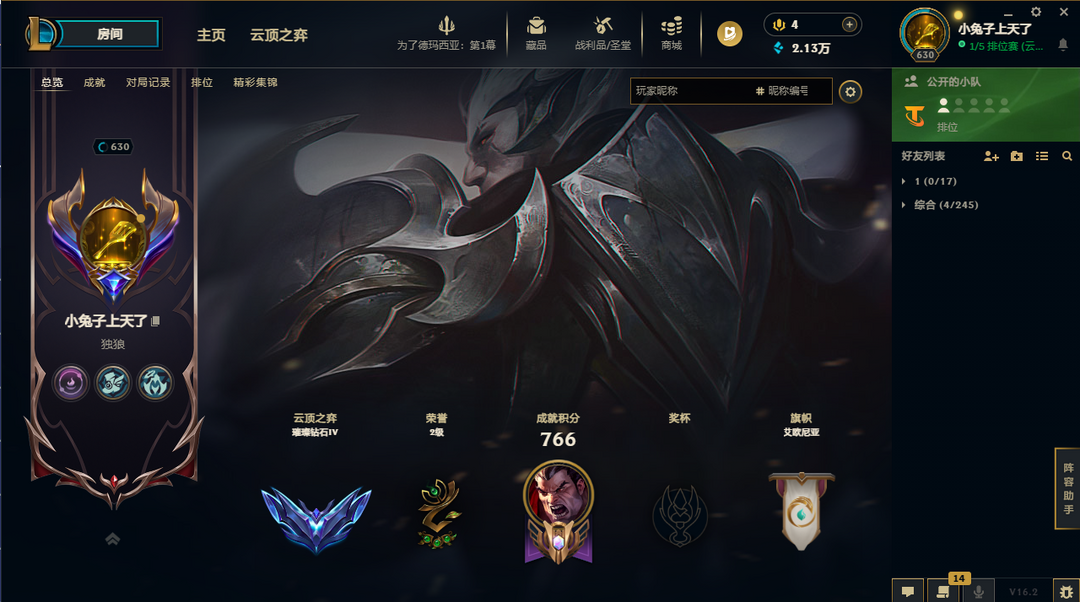 装备描述:一直都是自己玩的,最近比较忙不玩了单双灵活都可以打