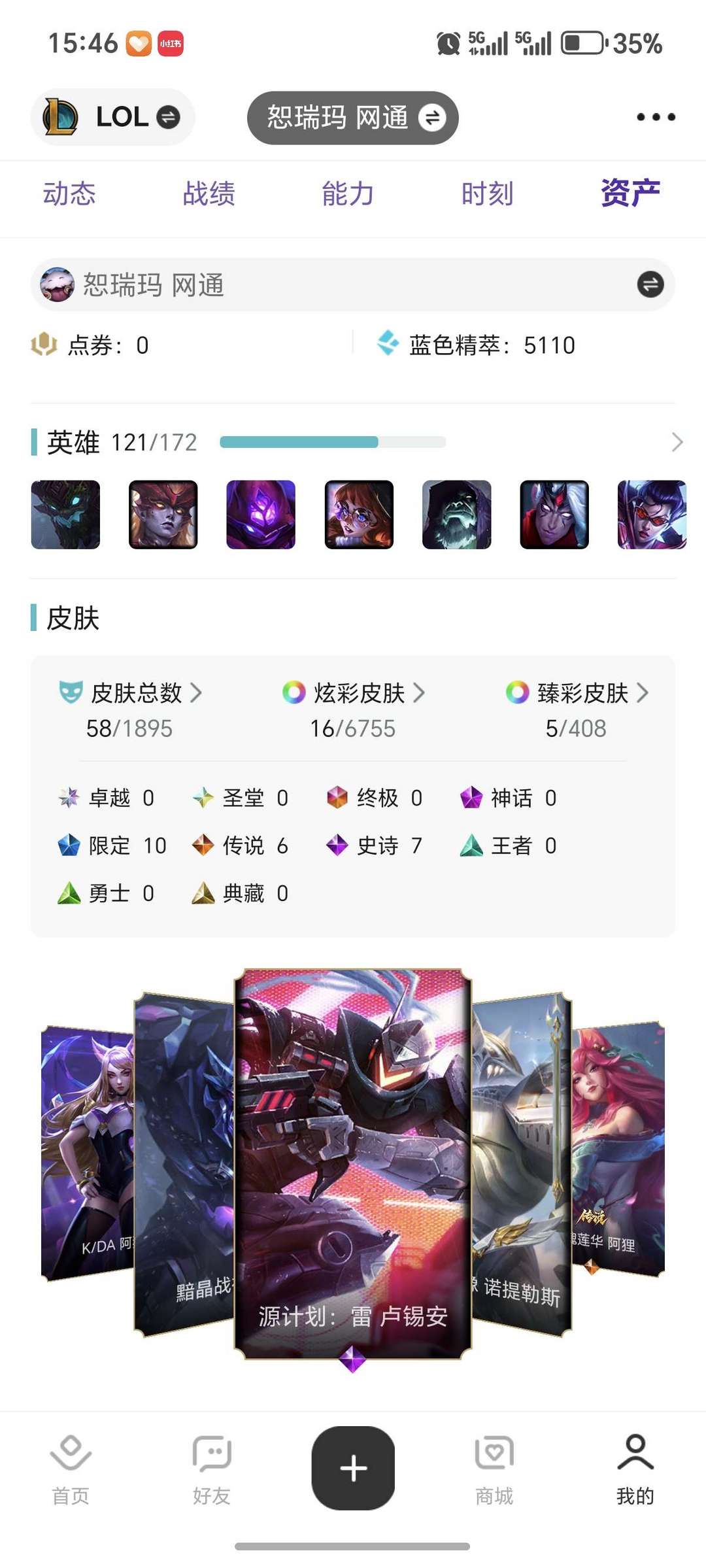 带妹炸鱼 小号练手 一百多个英雄60个皮肤都是精品,臻彩炫彩也有