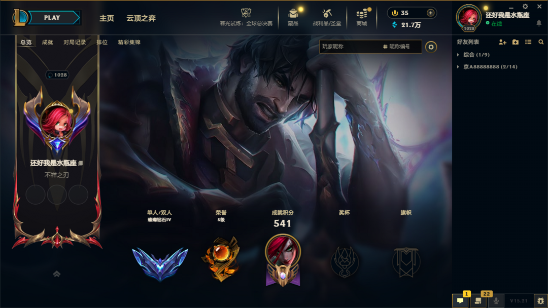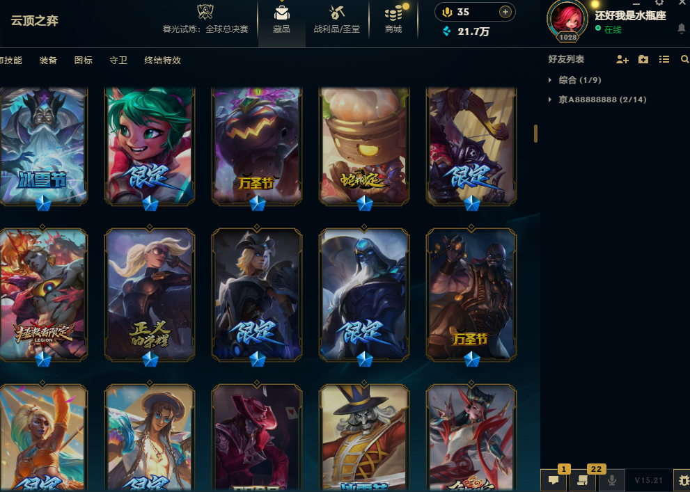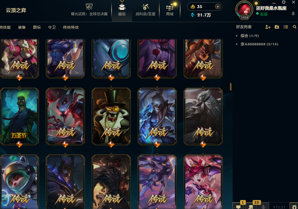 黑色玫瑰1300皮肤钻石可排位摄魂名人堂VN创战纪海之歌永恩斗魂佛耶戈冠军瑞兹IG卡莎黑夜黎明神龙瞎
