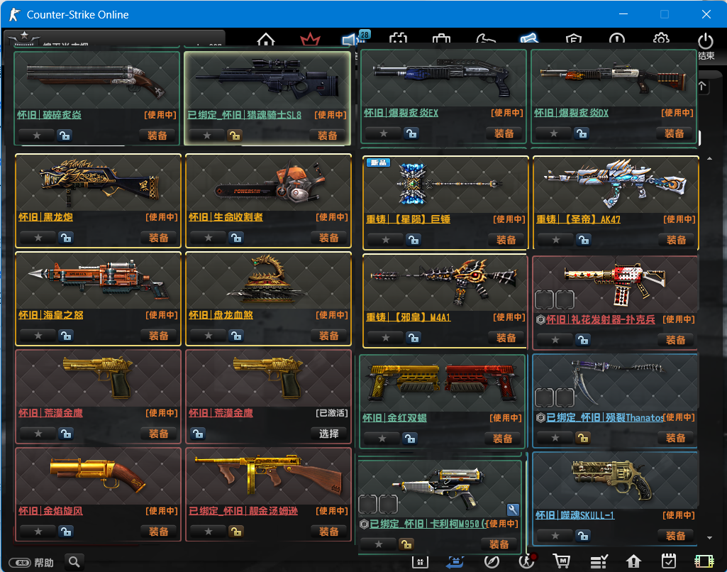 限制: 撤单率<70%才可租用此帐号装备描述:已经去黑雾!! 怀旧雷神,怀旧黑龙炮,生命收割者,海皇之怒,盘龙血煞,重铸邪皇,圣帝,重铸星陨巨锤,怒海狂鲨,加特林, 荒漠金鹰,金红双蝎,旋风斧头,锯刃,死亡骑士,殒裂,卡利柯+8,致命双刺,圣诞毁灭者,圣诞终结者,终结者ex,爆裂炙炎DX,猎魂骑士ex,风魔啸天破吹风机,破碎炙焱,圣水手雷, 光束步枪MK3,光束步枪MK1,暗雷兽,浩劫,超兽,合金,狂暴蒸汽+9,末日金骑+8,退魔圣焰+8,狂怒金骑+8,爆炎蒸汽+6, 黄金MG3+8,猎魂金骑,原石套, 生化模式,怀旧模式,重铸模式 致命打击,极速飞奔,进化基因,屠戮之刃,战神祝福,生存基因,手雷补给! 黯影の3-19赛季满 超能沙漠奇境超械遗迹星战奇幻恐龙蒸汽魔咒绿野巨龙燧发枪夏日(缺1和2赛季悬赏) 怀旧黑龙炮、电锯、斧头、金红双蝎、死亡骑士、 按一下F9键→输入完毕后!→拉动滑块→手动选择大区!→点击启动即可!