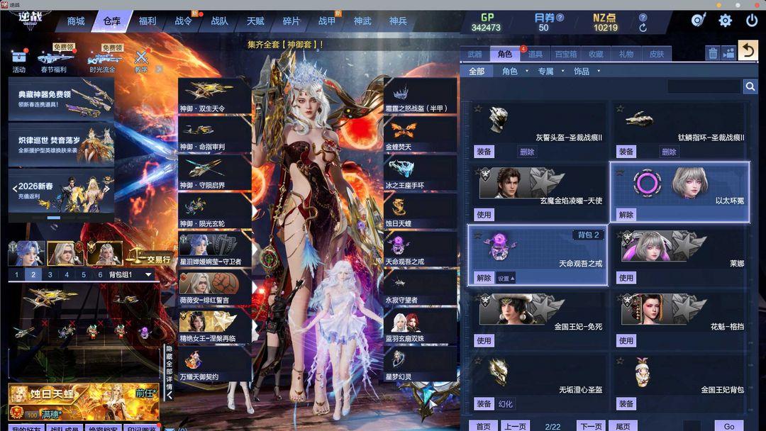 神御天耀山海星寰10+10/涅槃女王/莱纳天命戒指/金蛇坐骑/霜霆头盔/蓝羽双姝/