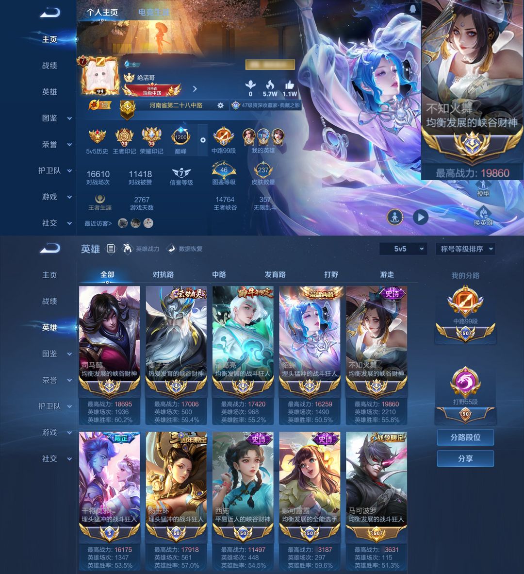 在榜省级中路99段近百段中路❤5历史国服火舞1.98W战力国服貂蝉司马懿诸葛亮❤貂蝉典藏巅峰魔方亮