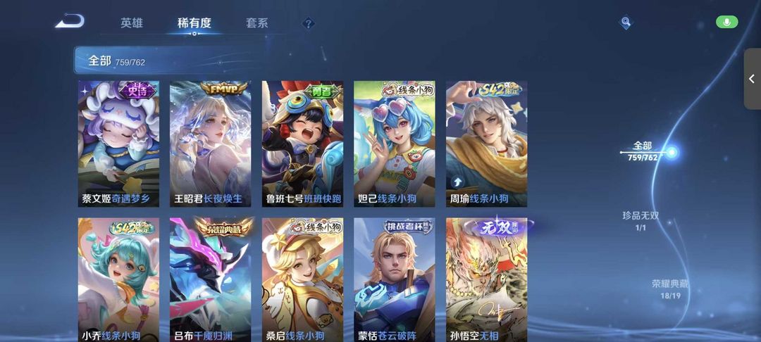 荣耀贵族|759p不禁言只缺③皮肤〖吕布典藏❤猴子无双〗满无双✨满珍品✨满小兵✨满按键✨满传说