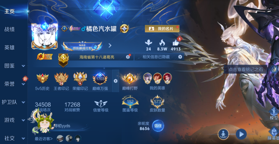禁巅峰.巅峰万强3700名♉4省标:诸葛老虎玄策韩信♉打野78段♉满打野无双新皮铠神罪已补