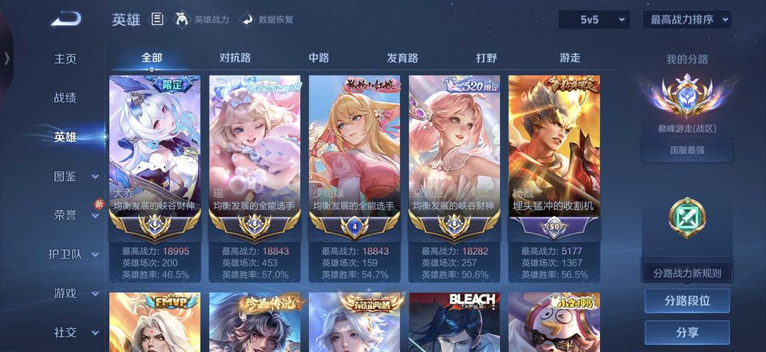 荣耀v10不禁言753皮❤顶级女号❤历史大国服巅峰游走❤历史大国瑶 大桥 朵利亚 少思源 ❤可排可巅