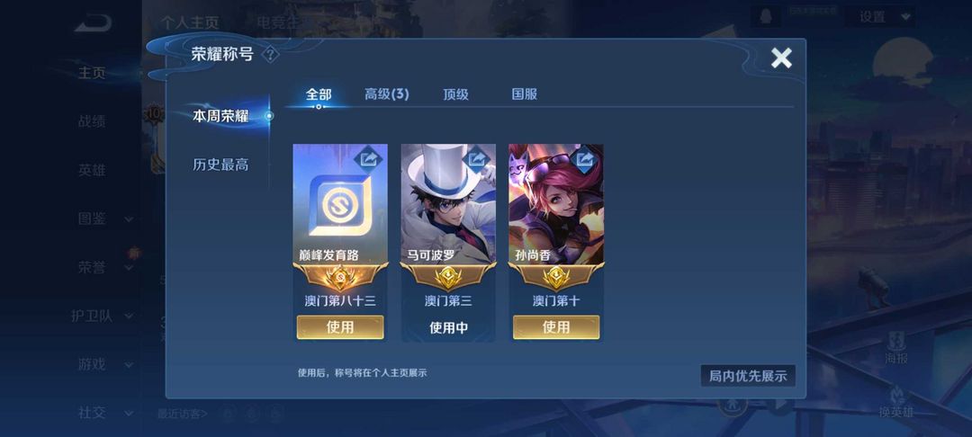⛔️现巅峰万强闪电框⚡️本周在榜省3马克波罗孙尚香⭐️怪盗基德❤️极品满皮国服v10⚡️禁止巅峰