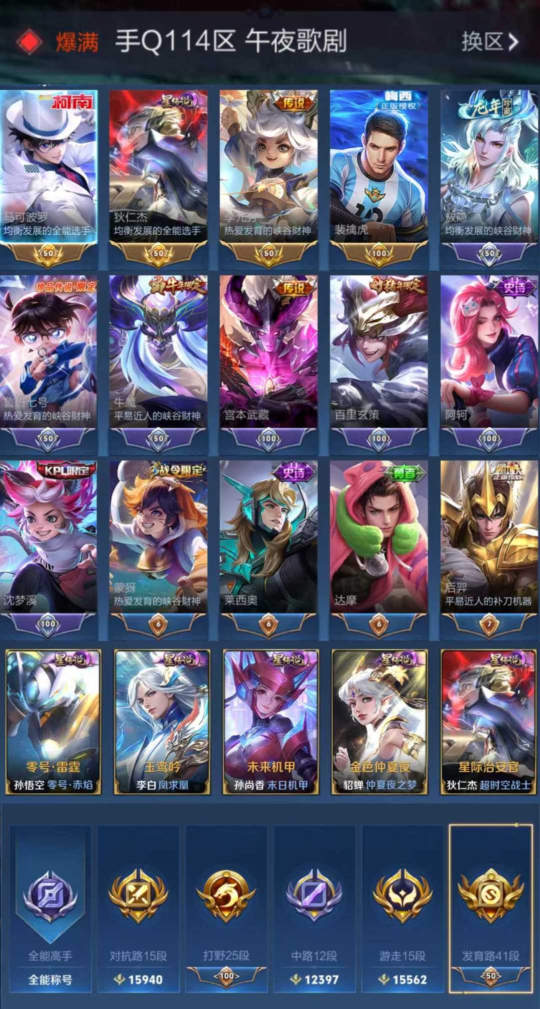 限制: 租号5次及以上 |装备描述:【C203】贵族V10~580皮肤104传说7水晶4无双2珍品基德柯南花合斗,离恨烟,群星魔术团,明辉仪,哈迪斯,众生和,九州拓,岁时盈,霜北刀,情瑶,弑枪猎影,神鉴启示录,幻阙歌,倪克斯神谕,鸣剑曳影,【全山海情兔年,全寅虎,全五虎上将,全牛年,全五兽】