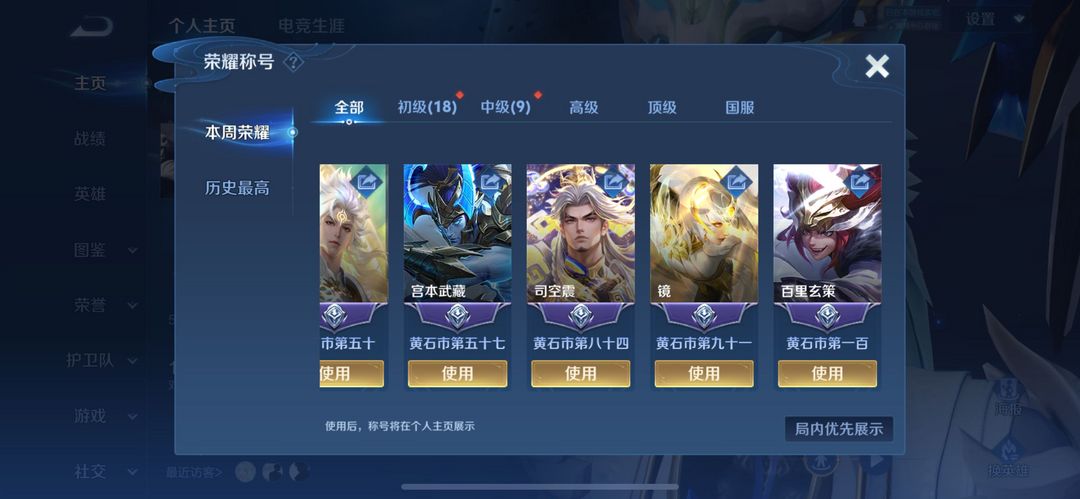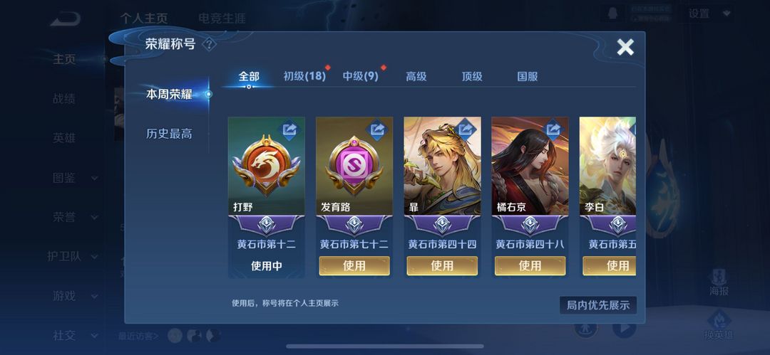 73段打野国服赵云橘子在榜9市标⭐️李白无双典藏✨十热门彩标二阶全能大师
