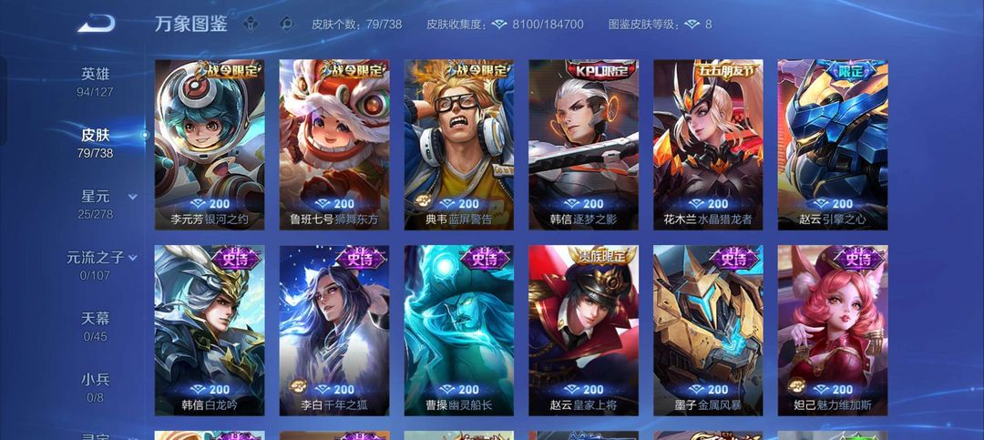 韩信逐梦之影白龙吟街头霸王赵云引擎之心典韦蓝屏警告80个皮肤懒得挨个填