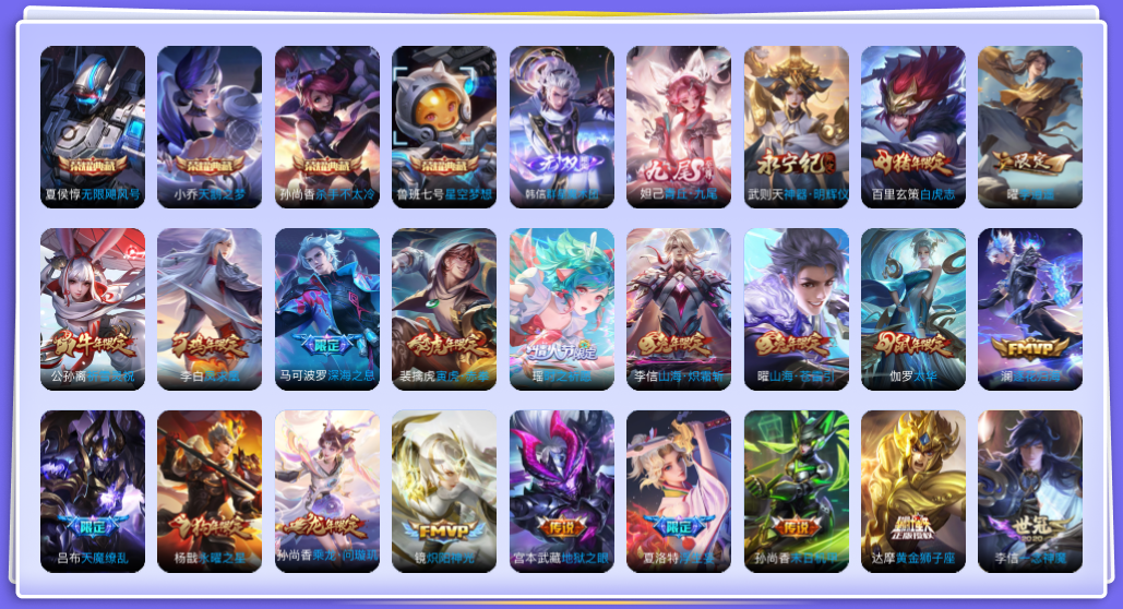 装备描述:4典藏3无双75传说 实名: 可修改 贵族等级: V10 英雄数: 126 皮肤数: 523 荣耀水晶: 武则天,天鹅之梦,星空梦想,无限飓风号,杀手不太冷 无双皮: 神器·明辉仪,青丘·九尾,韩信群星魔术团 传说皮: 黄金狮子座,黄金射手座,冠军飞将,云鹰飞将,黄金白羊座,猫影幻舞,久胜战神,炽阳神光,一念神魔,云霓雀翎,末日机甲-孙尚香,地狱火,仲夏夜之梦,零号·赤焰,海洋之心,地狱之眼,飞鸢探春,胖达荣荣,李逍遥,乞巧织情,时之恋人-刘备,游龙清影,淬星耀世,超时空战士-狄仁杰,遇见胡旋,花朝如约,挚爱之约,挚爱花嫁,无双飞将,神器·狴犴令,神器·明辉仪,山海·炽霜斩,山海·琳琅生,山海·苍雷引,炽翼辉光,燃星之曲,画中仙,浮生妄,妄想实况,妄想奇谈,鹤归松栖(云缨),遇见神鼓,澜逐花归海,艾琳觅芳踪,乘龙·问璇玑,貂蝉曦玄引,金乌负日,黄金天蝎座,云中君群星魔术团 限定皮: 冰锋战神,遇见飞天,李小龙,奔雷神使,祈雪灵祝,游园惊梦,梁祝,御风骁将,云端筑梦师,时雨天司,引擎之心,龙胆,白鹤梁神女,武圣,烈魂,魔法小厨娘,辉光之辰,异界灵契,玄嵩,白晶晶,岱宗,天狼溯光者,虎魄,