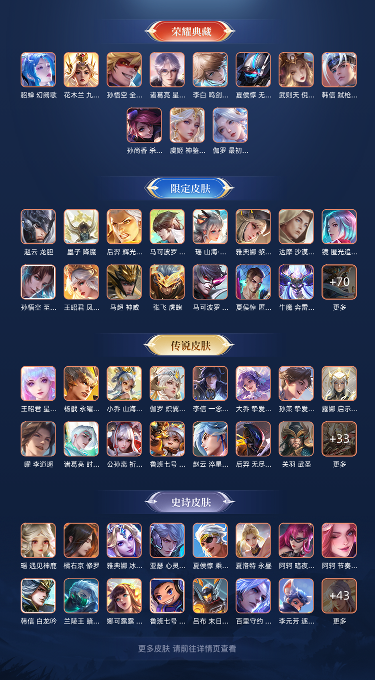 荣耀v10,全无双,11典藏,106传说(不算限定)可排位-最强王者