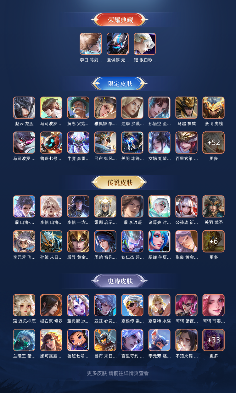 381皮 3荣耀典藏 多传说限定皮 李逍遥 冰封战神 全五虎上将 全牛年限定