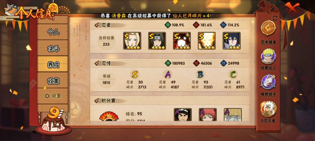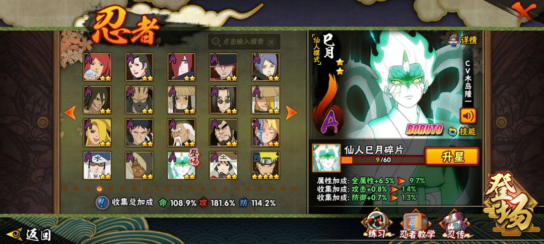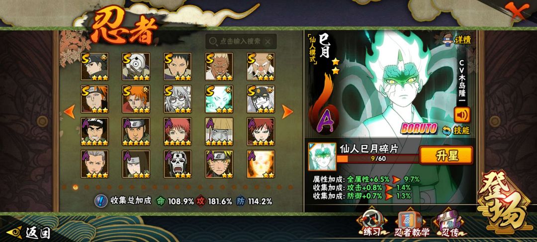 巳月(仙人模式)传说自来也 忍战带土 阴九尾 30S 49A 天道超 桃式 熊猫 1420W V11