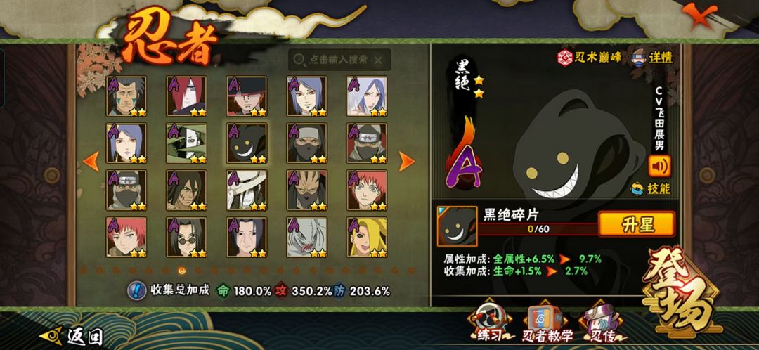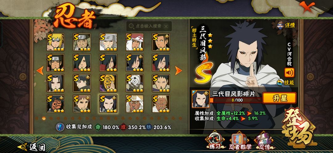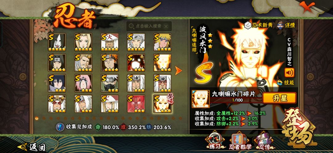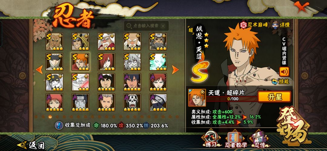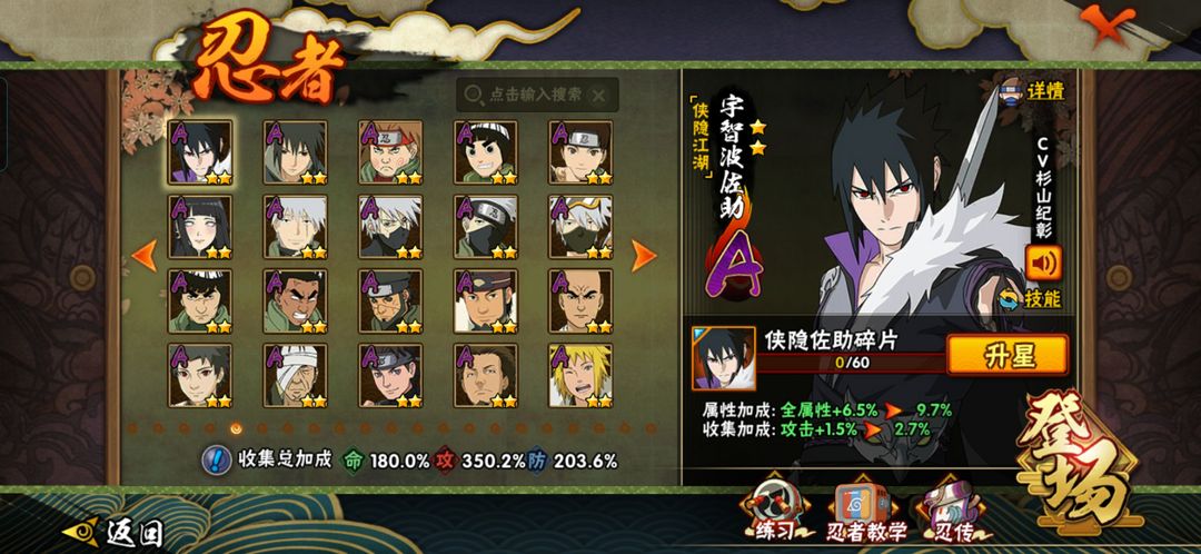 侠隐佐助✨2530w全忍者✨400+忍者V15✨秽土再不斩✨六尾鸣人✨神农✨黑绝✨侠隐兜