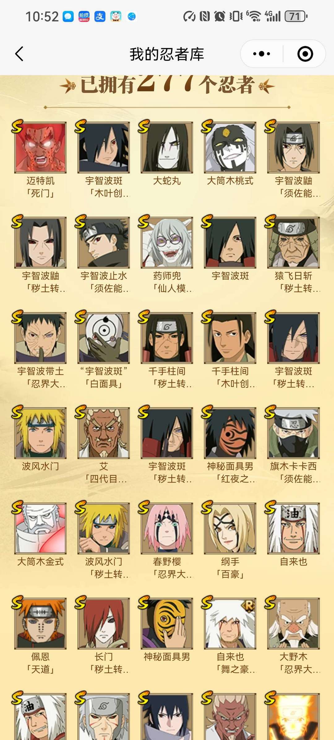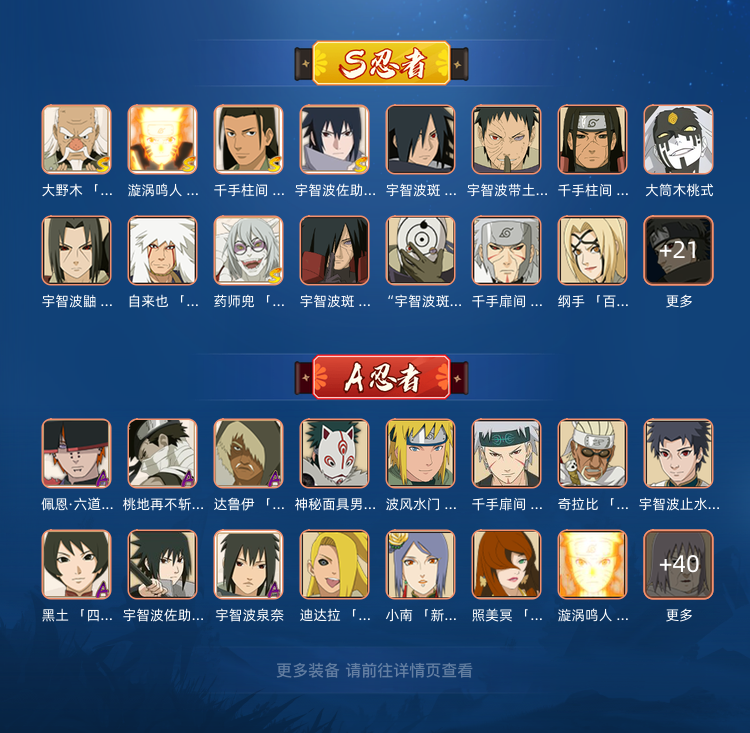 装备描述:全高招S高招A,通灵有熊猫,满级霸体满级散,皮肤忍者全