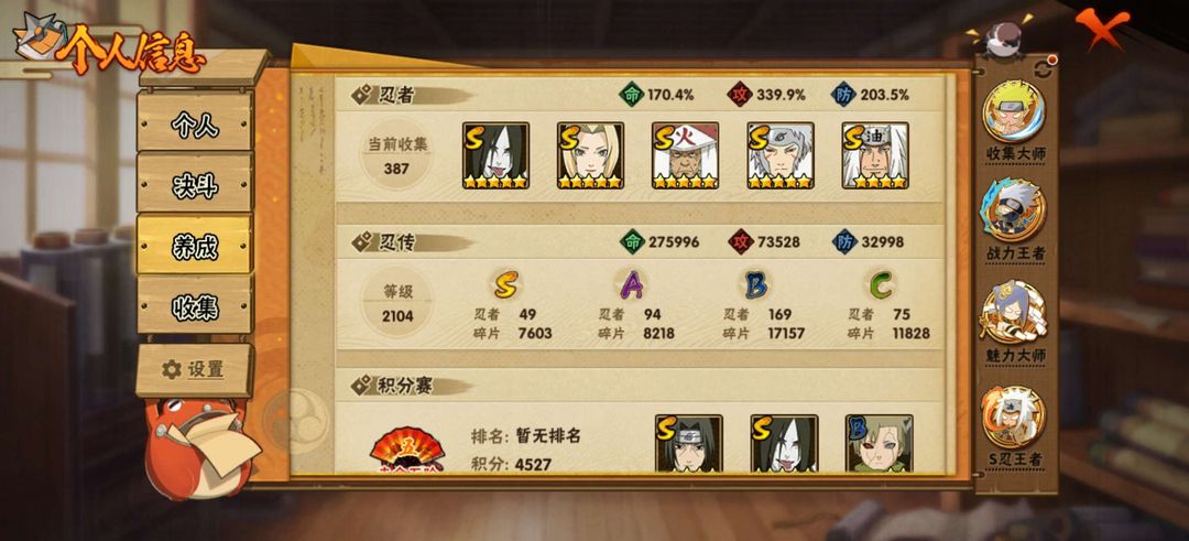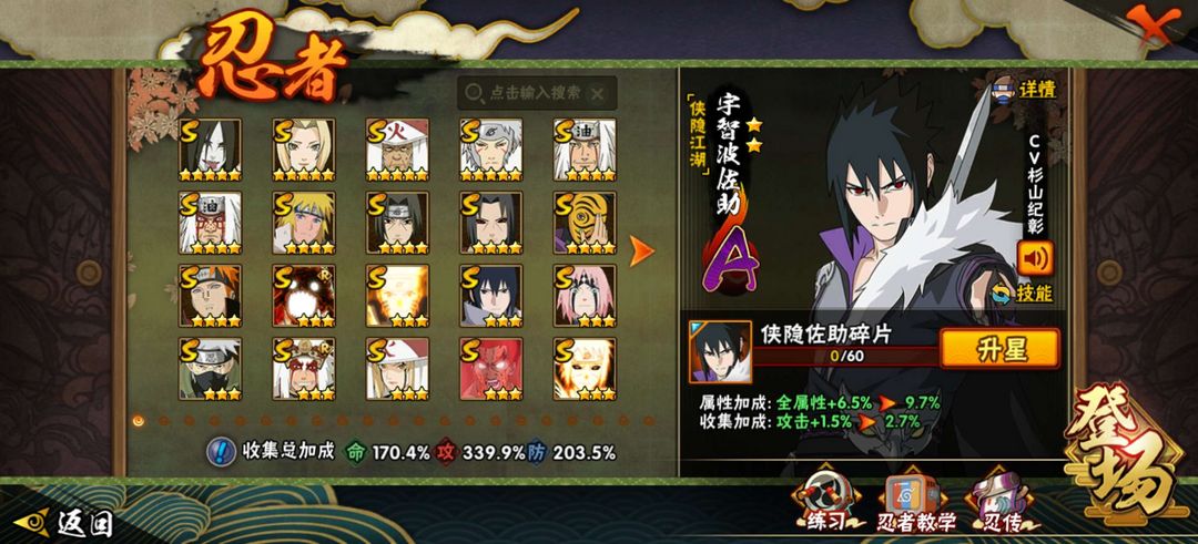 49S 94A 387忍者!侠隐佐助已秒!全氪金忍者!32通灵!全秘卷!53级魅力!