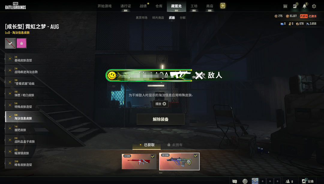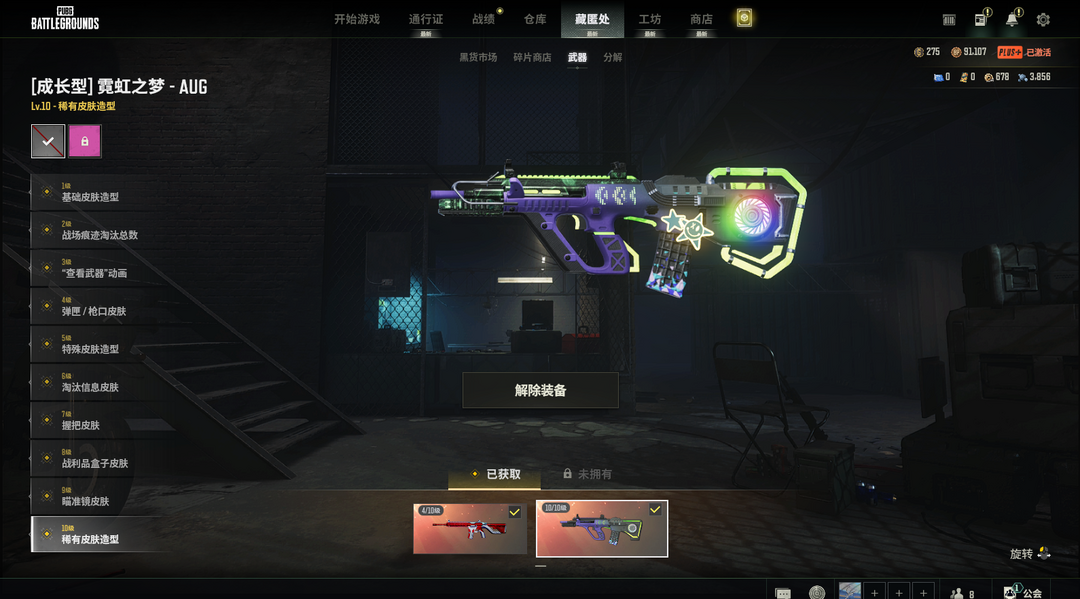 1000皮满级⑩级霓虹显卡AUG⚛️新黄黑异色④无信号M416危险玩偶M762破碎MINI镀金S12