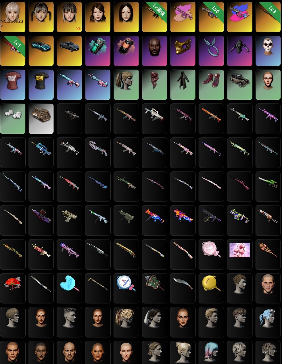 装备描述:---家里不要租 家里电脑玩不了--- 二级密码123456【7神器】瀚娜/兰博/马丁/满女团有大厅有舞蹈/满级异色八戒M4⑥异色爆裂AUG/孙悟空M24/恶魔ACE/无信号M4/沙悟净MINI/塞壬平底锅/阿狸大礼包/2彩色烟雾弹/发光套/大金牙/女团M4/女团MK12/完美ACE/完美98K等大量皮肤套装