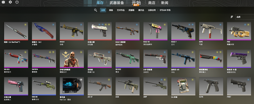 完美C+⭐原皮-短剑⭐蓝宝石穿肠刀⭐印花集沙鹰⭐二西莫夫AK47⭐合纵M4A4⭐迷人眼大狙