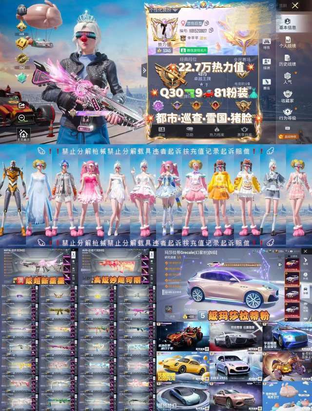 限制: 租号1次及以上 | 撤单率<40%才可租用此帐号装备描述:毁号,涉及毁坏虚拟财产罪及计算机安全罪,请文明游戏素质游戏,让我们共建美好租号平台 【特别事项】 红装可任意分解升级所需要满级的红装 禁止分解枪械载具,违者拉黑起诉赔偿 非账号问题撤单的全部永久拉黑 A.游戏过程中请不要恶意挂机或者不文明发言 B.恶意挂机、顶号等行为将被拉黑无法再次下单 C.进入游戏后中途请勿退出登陆,否则无法再次上号 D.部分账号由于异地登录可能会出现密码错误提示,通常再尝试5-6次后可上号 喜欢本账号请点 ☆收藏☆ 方便下次租用,谢谢光临惠顾