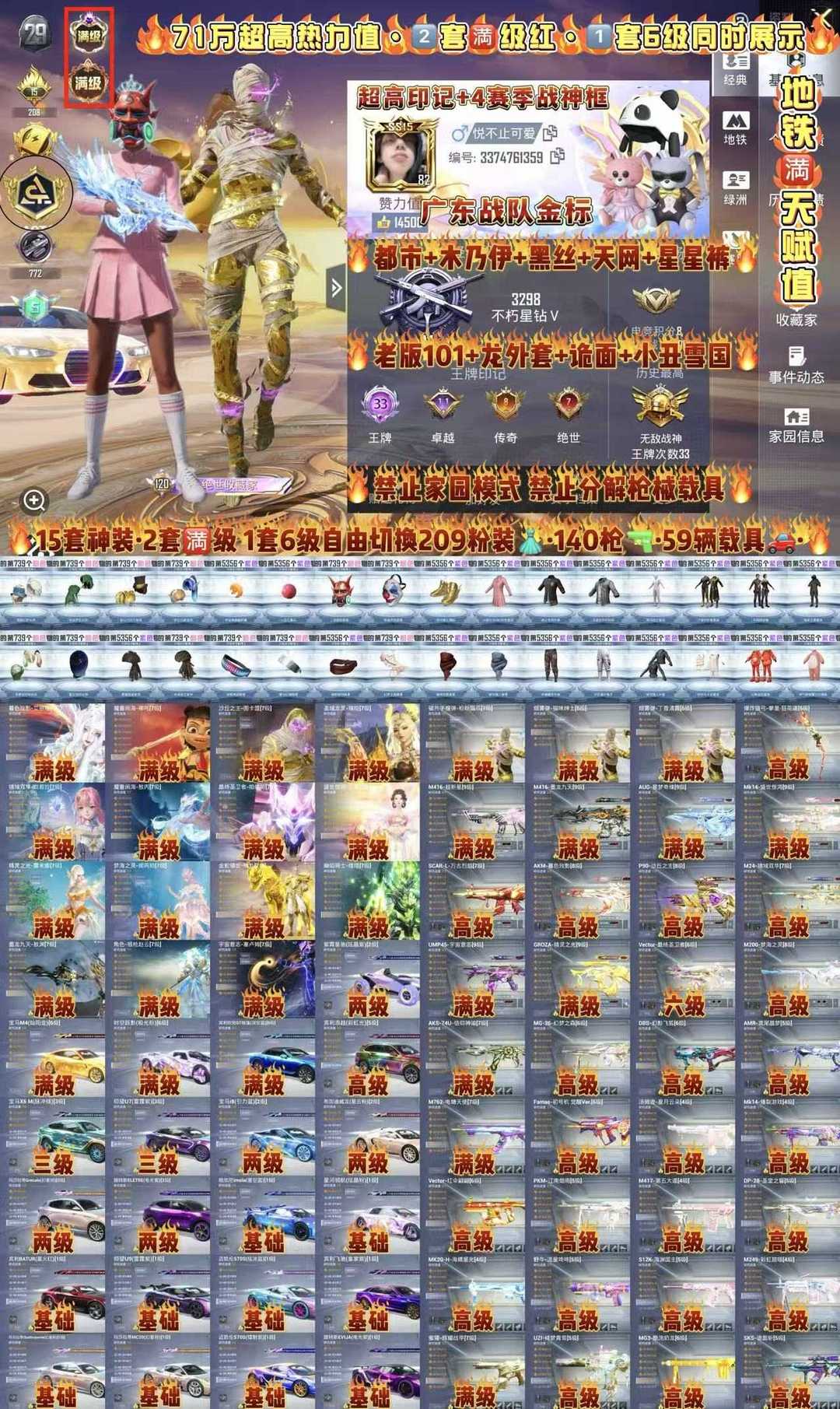 限制: 租号5次及以上 | 撤单率<30%才可租用此帐号装备描述:请勿撩骚卡泡,涉政也会导致封号,以上行为导致封号起诉索赔。 此号价值较高不文明游戏导致封号,一律按照充值金额起诉索赔毁号,禁止分解枪械车辆,恶意分解枪械车辆,一律起诉索赔, 涉及毁坏虚拟财产罪及计算机安全罪,请文明游戏素质游戏,让我们共建美好租号平台 ,供您畅选,感受良好游戏体验! 注意事项: A.游戏过程中请不要恶意挂机或者不文明发言 B.恶意挂机、顶号等行为将被拉黑无法再次下单 C.进入游戏后中途请勿退出登陆,否则无法再次上号 D.部分账号由于异地登录可能会出现密码错误提示,通常再尝试5-6次后可上号 喜欢本账号请点 ☆收藏☆ 方便下次租用号,涉及毁坏虚拟财产罪及计算机安全罪,请文明游戏素质游戏,让我们共建美好租号平台 本游戏账号:133粉64枪20载具内含1飞机3级猫爪手雷星空马 满级红装:精灵之光露米娜、欧若拉、木乃伊、熬渊、妮芮妲 满炫光金宾利皇家紫彩虹光 五级宾利GT 满级甜心首席 满级万古烈焰 满级熔岩统帅 满级玉魂精魄 满级超新星gz 满超新星m4 满级沙漠p90 7级盖世英雄 5级仙履奇缘 5级至情至圣 5级宾利蓝色 5级宾利炫光 1级杜卡迪紫 1级玛莎