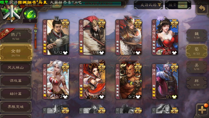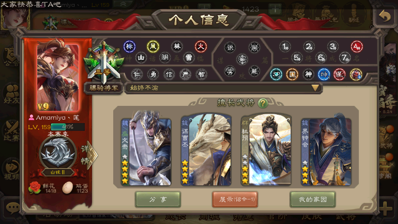 限制: 撤单率<80%才可租用此帐号装备描述:【有卡有豆】大将军◆动刘焉◆回廊神曹操◆回廊徐荣◆回廊神甘宁60史诗动神赵云动界钟会马钧谋夏侯大宝