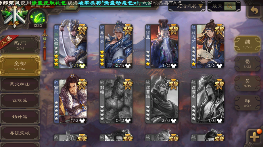 【有点将卡】动神曹操◆回廊文鸯◆双形态界钟会◆回廊动神孙策十常侍界徐盛杜预许攸界沮授26史诗白马