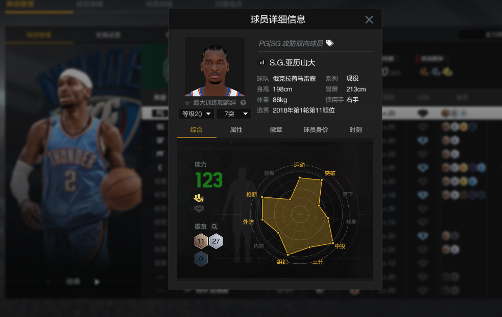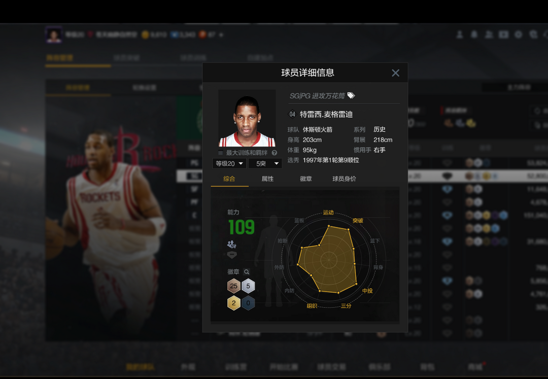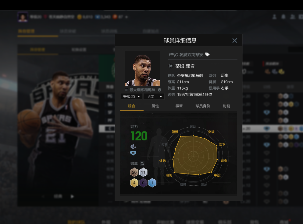 装备描述:满突带时刻林书豪 5突04邓肯 5突麦迪 4突甜瓜 10突亚历山大 OG 西卡 波神 等实用球员