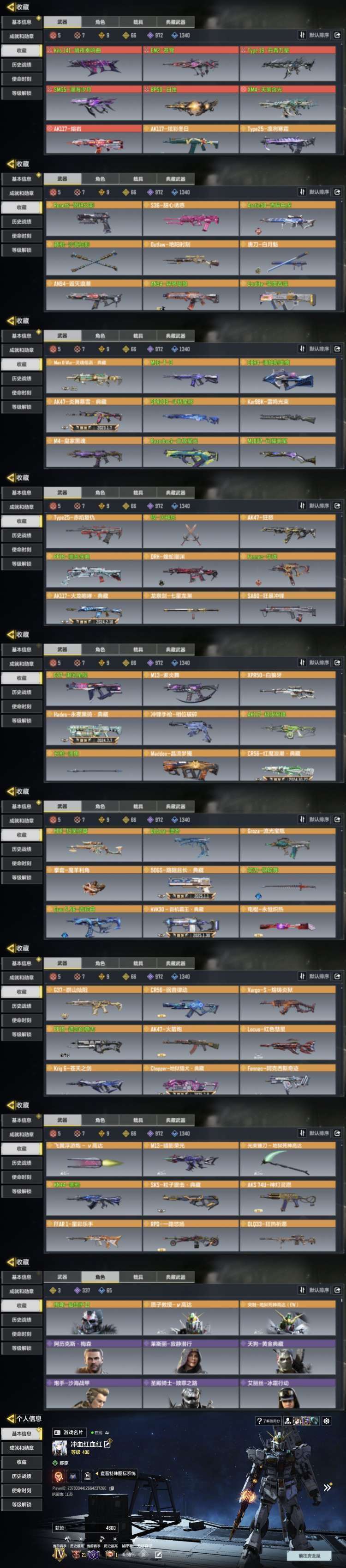 限制: 租号10次及以上 |装备描述:♥全套高达钢之器,钢之魂系列 ♥1000多迷彩皮肤,神话都有钻皮,热门武器钻皮也有很多,黄金皮白金皮基本都肝了 ♥账号充值4.9余万,微 信钱包账单均有记录,出现长期封禁问题定会依法追究,不惜一切代价依法挽回损失,文明游戏,素质游戏。